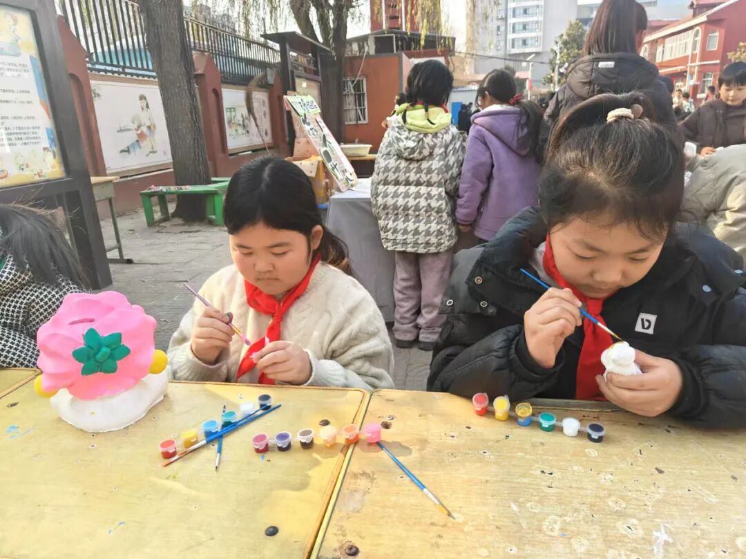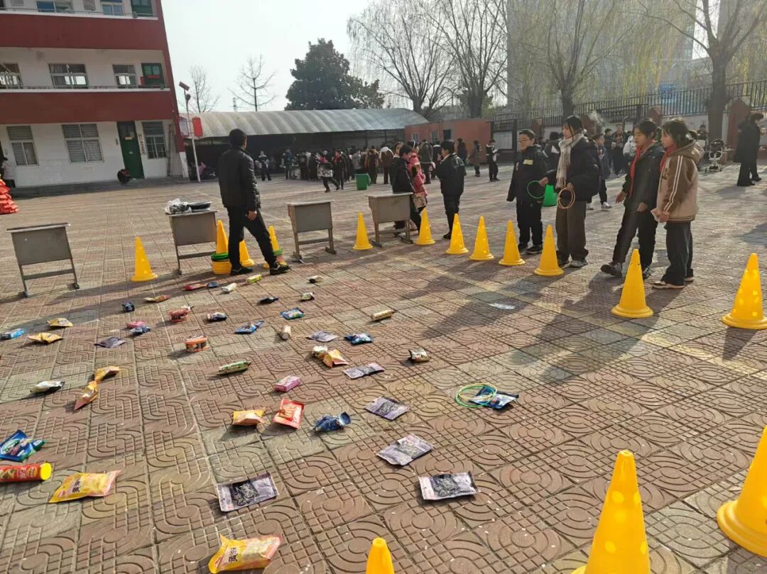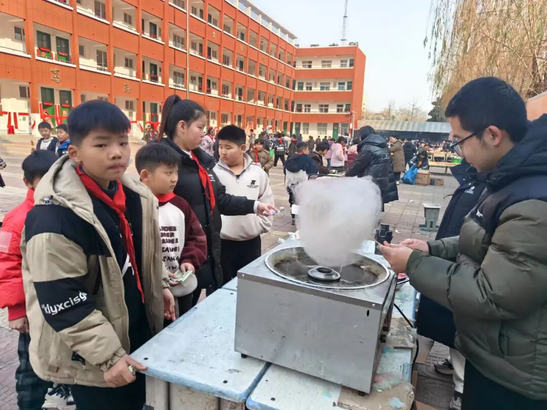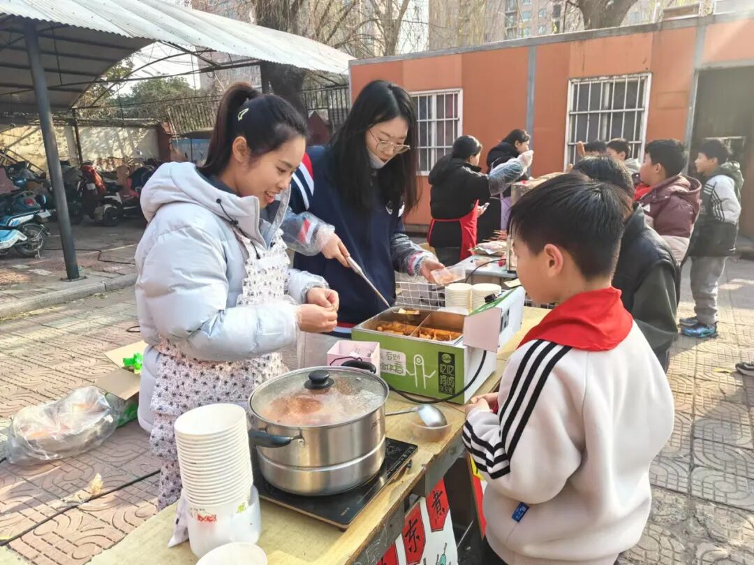 “年味儿”摊位上摆满了琳琅满目的特色小吃和各种经典游戏。石膏娃娃、套圈、吃汤圆、尝美食......这些活动成为了学生们快乐时光中的主角。