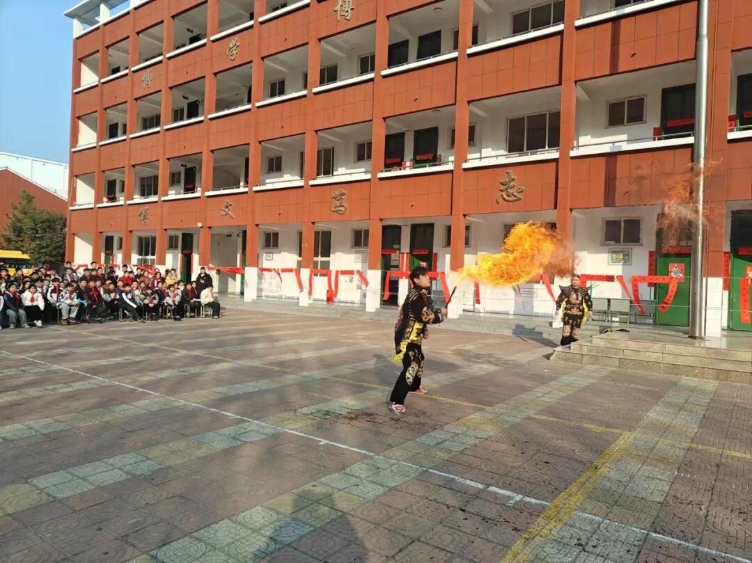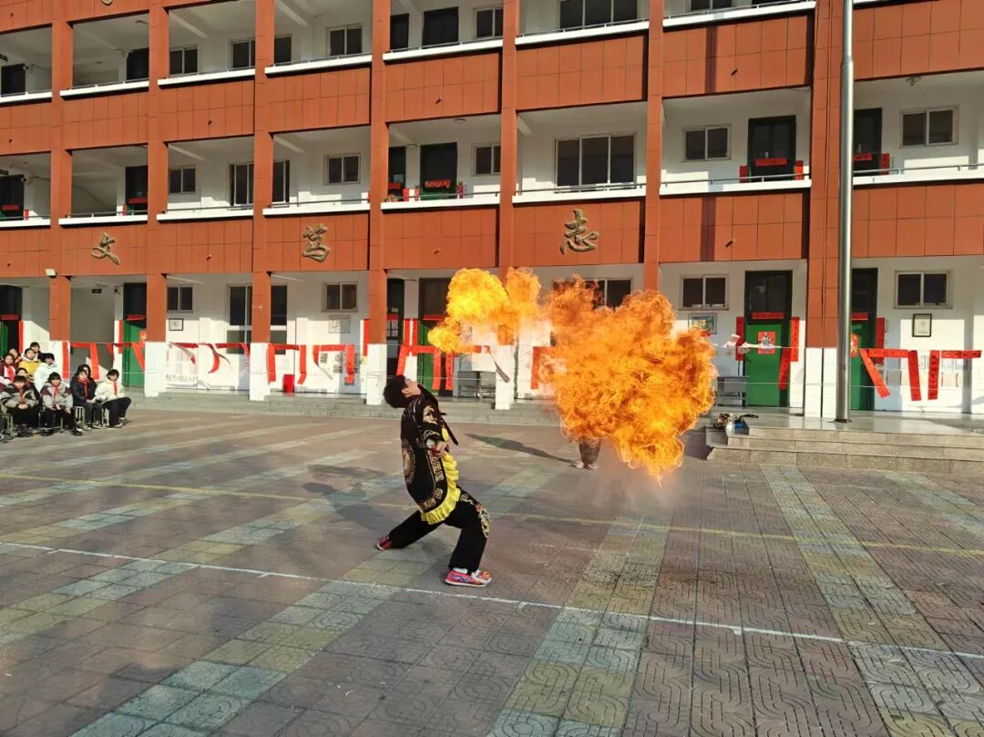喷火表演,是一种古老而神秘的表演艺术。演员手持喷火器,在欢快的节奏中,开始吐出大量的火焰。那火舌般的光芒随着手势跃动,仿佛一条烽火连天的龙脊。每一次喷出的火焰都带有不同的颜色和强度,一时间热浪扑面,让师生感受到一种独特的刺激和美妙。
