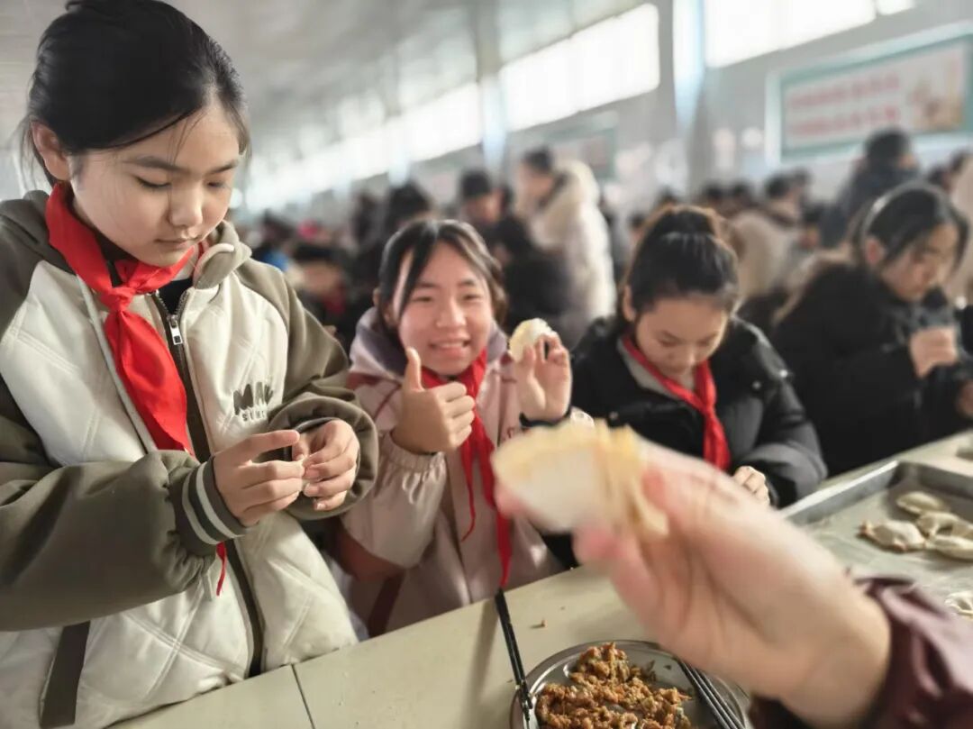 经过厨房师傅的烹煮,一碗碗热气腾腾、香气四溢的饺子端上了桌,美味的饺子宴开始啦!新鲜出炉的饺子让学生吃得津津有味,不论小口轻咬或是狼吐虎咽,饱满多汁的饺子在舌尖上炸裂,冲击着味蕾,学生直呼“真香”,“美味”,“这是我吃过最好吃的饺子”。