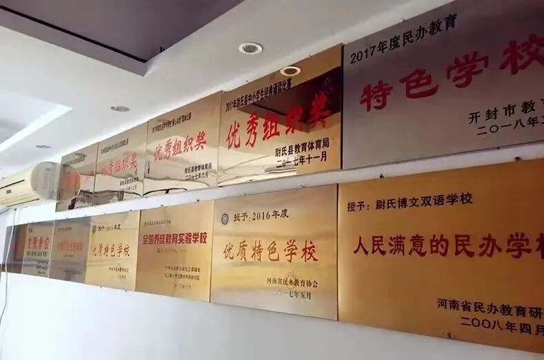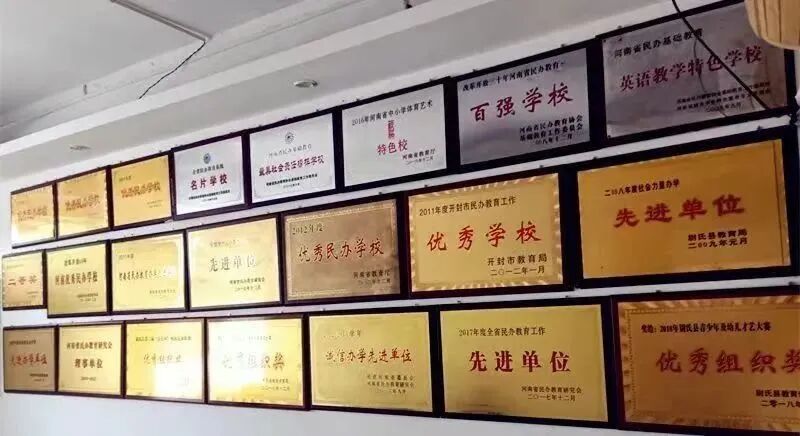 办学十八年来,学校先后被省教育厅、省民委、省民协、市教育局、县教育局评为“河南省优秀民办学校 ”、“河南省民办中小学模范学校”、“河南民办学校先进办学单位”、“河南省人民满意的民办学校”、“河南省特色学校”、“河南省中小学一级食堂”、“省级卫生先进单位”、“河南省民办中小学书法和英语特色学校”、“开封市民办特色学校”、“尉氏县优秀民办学校”。