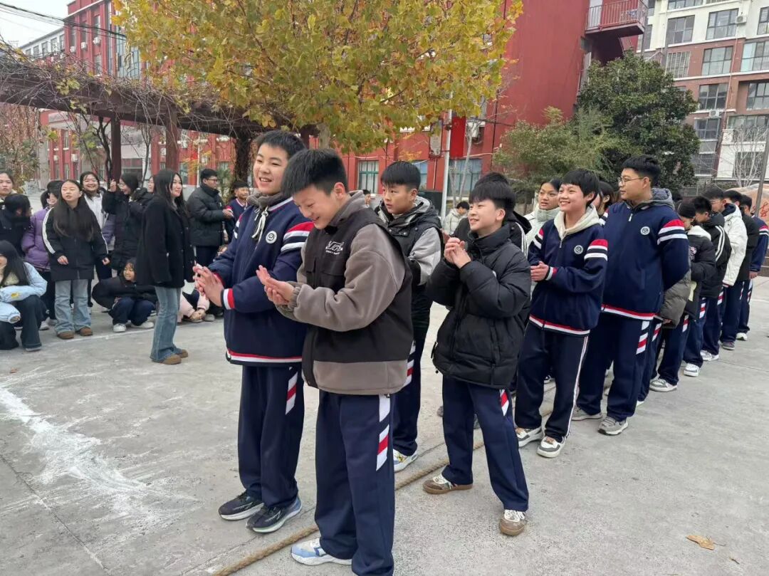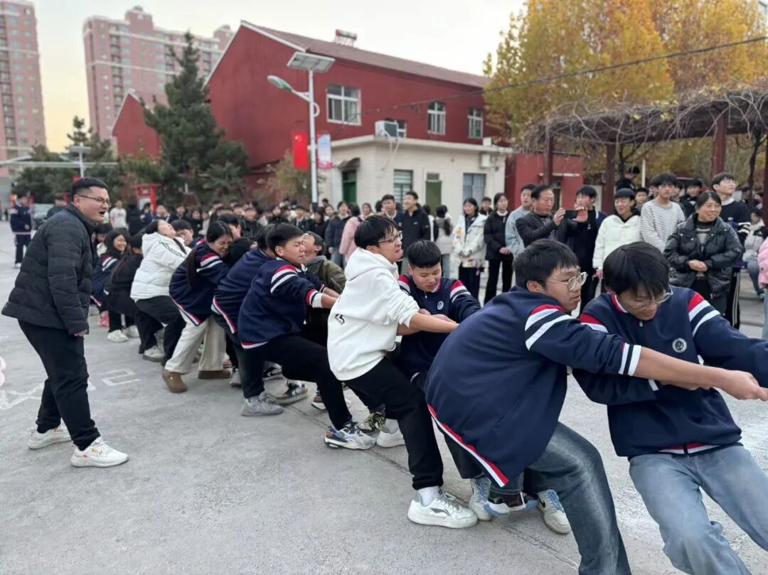 哨声一响,绳索紧绷,空气中弥漫着紧张而又兴奋的气息。双方队员脚踏实地,双手紧握长绳,眼神中闪烁着对胜利的渴望与团队的信念。汗水与坚持,在这一刻闪耀,无论输赢,每位参赛者都是自己的英雄。各班啦啦队火力全开,齐声呐喊,为参赛队员加油助威。